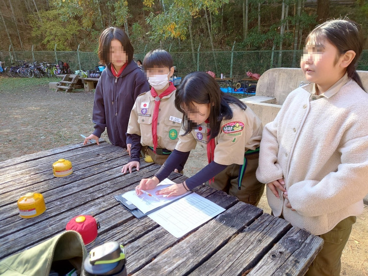 4団ボーイ隊は中1と小6のみの班ですが、日頃の活動で学んだ技能を活かし、班で意見を出し合いながら挑戦しました。